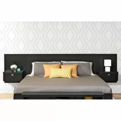 Prepac Floating Headboard With Nightstands – King Bed Size – Black