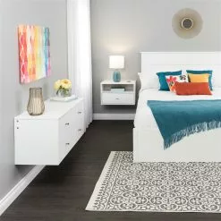 Prepac Floating Bedroom White Hanging Dresser And Nightstand Set