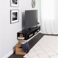 Prepac Wide Wall Mounted TV Stand In Black Finish – 70-in X 16-in X 48-in