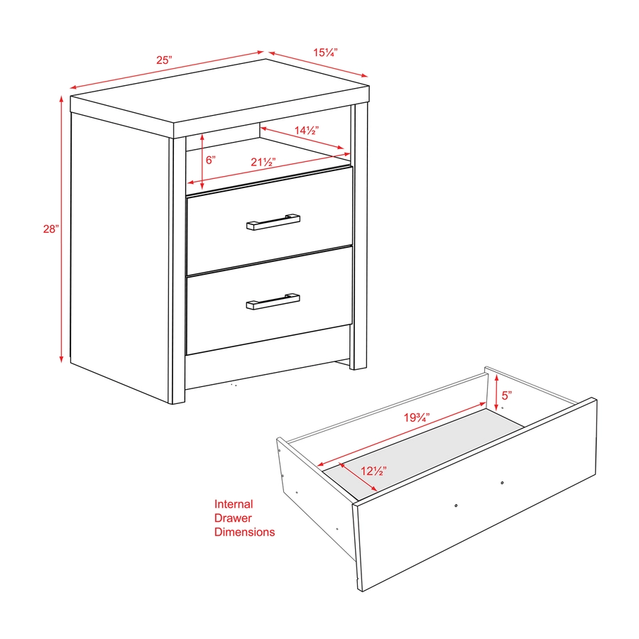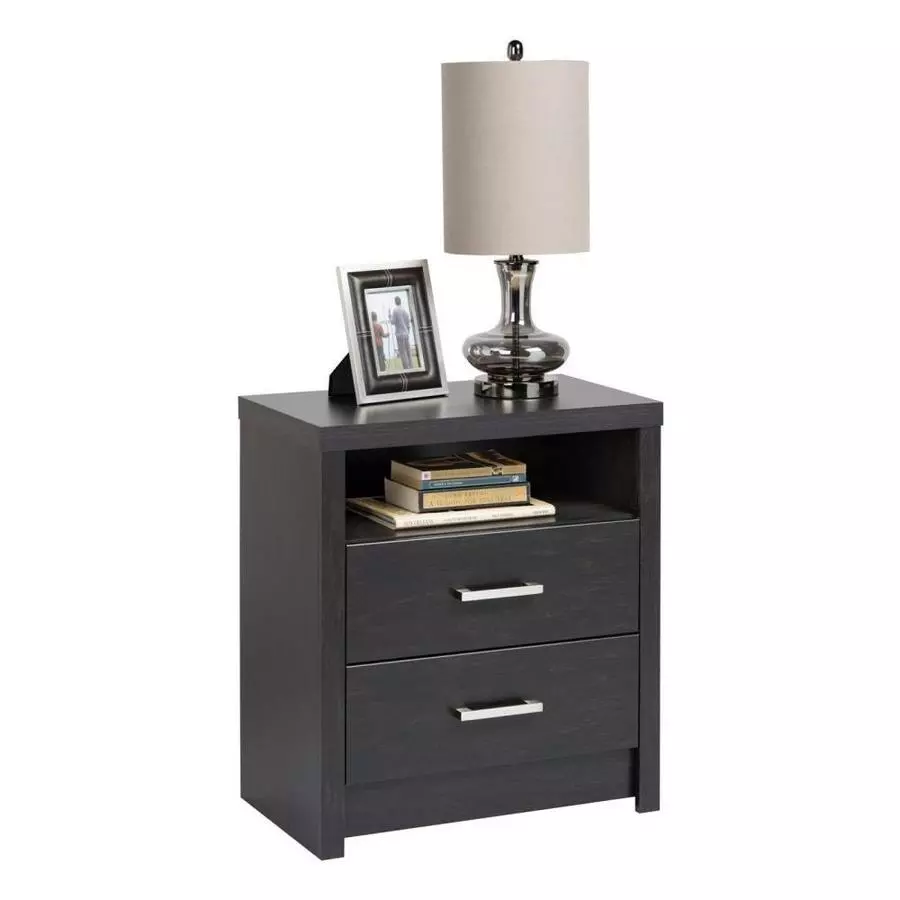 - 2 drawers and an open shelf provide ample space for bedside storage