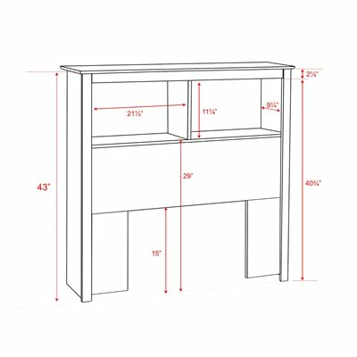 Bookcase Headboard Add a finishing touch and storage space to your bedroom with this Bookcase Headboard. Designed to suit any decor, this headboard adds compartments worth of storage to your bedroom. Finally, a place to storage and display your books, alarm clock and picture frames! Finished in durable laminate Constructed from CARB-compliant, laminated composite woods and a sturdy MDF backer Ships ready to assemble, includes an instruction booklet for easy assembly Five-year manufacturer’s limited warranty on parts Proudly manufactured in North America