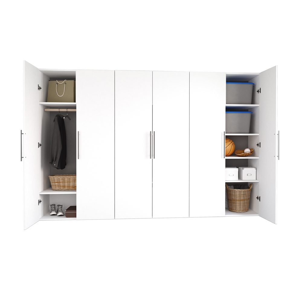 The HangUps Storage Cabinet Collection by Prepac(R) offers versatility for your ever changing storage needs in the garage, laundry room, office or workshop. The Cabinets mount securely to the wall with a heavy duty metal rail and hook system. The wall mounted feature ensures easy cleaning beneath the cabinets and protects your stored items from water & dirt. The HangUps Collection by Prepac(R) is constructed using laminated composite wood and features metal handles and adjustable hinges. This product ships ready-to-assemble and includes all hanging rails and fastening bolts. Add other cabinets from our HangUps Collection by Prepac(R) to create a storage system to convert any cluttered room into an organized space.