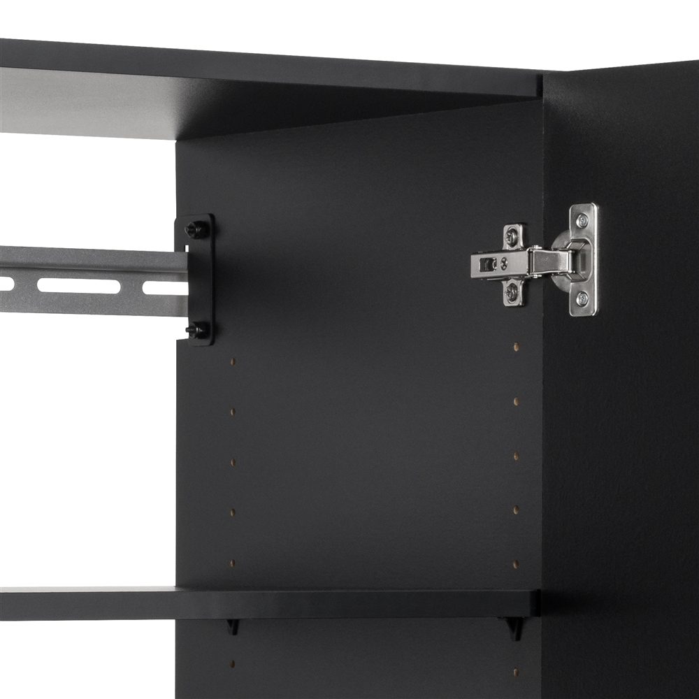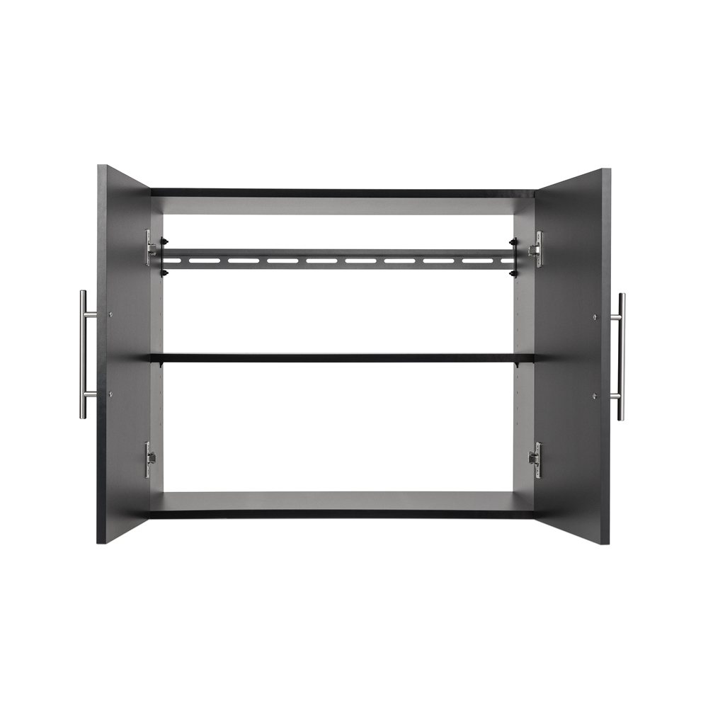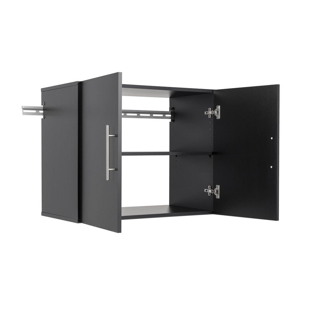 The HangUps storage cabinet collection offers versatility for your ever-changing storage needs in the garage, laundry room, office or workshop. The cabinets mount securely to the wall with a heavy-duty metal rail and hook system. The wall mounted feature ensures easy cleaning beneath the cabinets and protects your stored items from water and dirt. The HangUps collection is constructed using laminated composite wood and features metal handles and adjustable hinges.