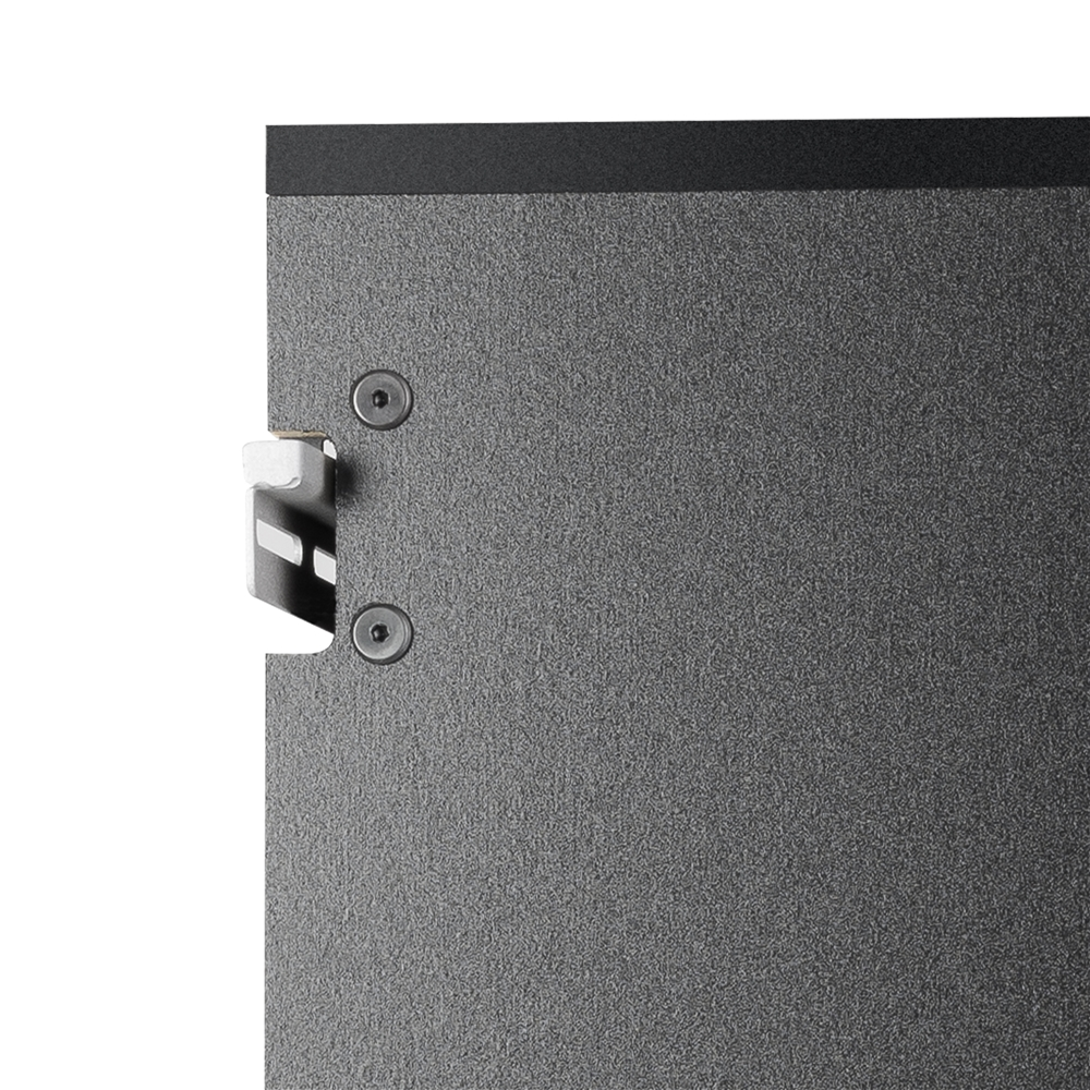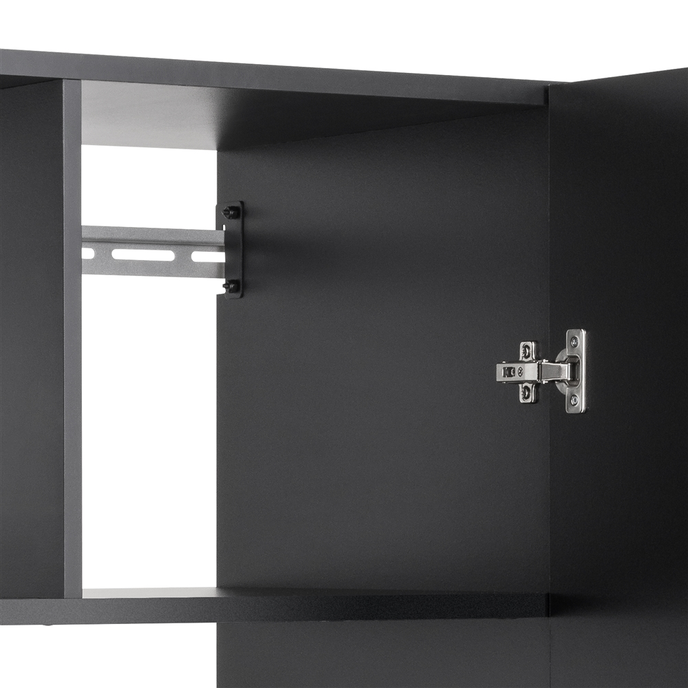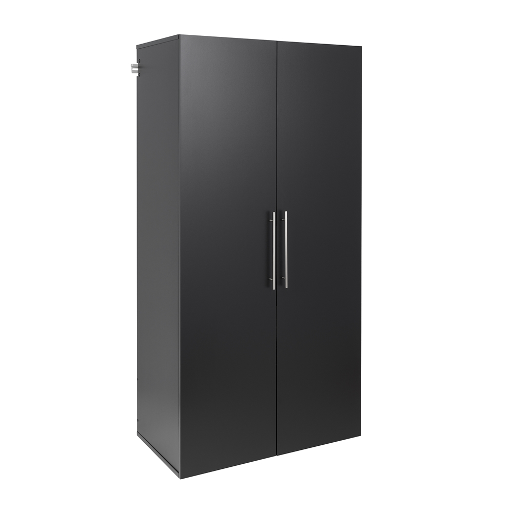 The HangUps storage cabinet collection offers versatility for your ever-changing storage needs in the garage, laundry room, office or workshop. The cabinets mount securely to the wall with a heavy-duty metal rail and hook system. The wall mounted feature ensures easy cleaning beneath the cabinets and protects your stored items from water and dirt. The HangUps collection is constructed using laminated composite wood and features metal handles and adjustable hinges.