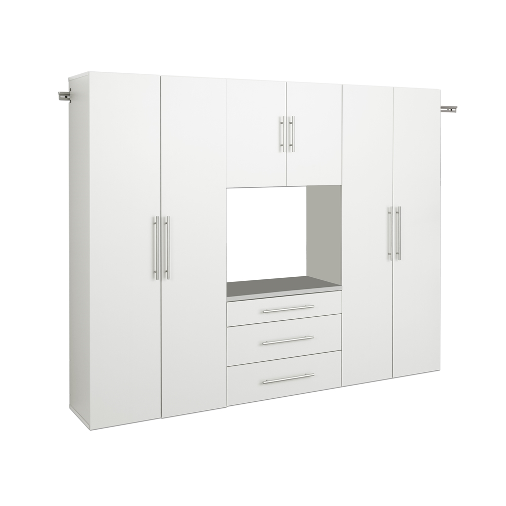 The HangUps Storage Cabinet Collection by Prepac(R) offers versatility for your ever changing storage needs in the garage, laundry room, office or workshop. The Cabinets mount securely to the wall with a heavy duty metal rail and hook system. The wall mounted feature ensures easy cleaning beneath the cabinets and protects your stored items from water & dirt. The HangUps Collection by Prepac(R) is constructed using laminated composite wood and features metal handles and adjustable hinges. This product ships ready-to-assemble and includes all hanging rails and fastening bolts. Add other cabinets from our HangUps Collection by Prepac(R) to create a storage system to convert any cluttered room into an organized space.