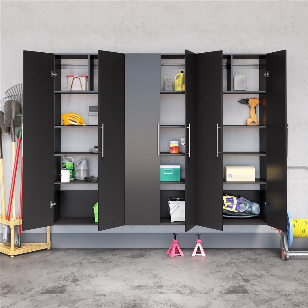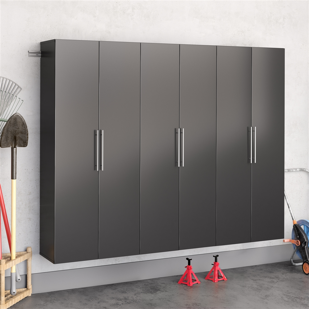 The HangUps storage cabinet collection offers versatility for your ever-changing storage needs in the garage, laundry room, office or workshop. The cabinets mount securely to the wall with a heavy-duty metal rail and hook system. The wall mounted feature ensures easy cleaning beneath the cabinets and protects your stored items from water and dirt. The HangUps collection is constructed using laminated composite wood and features metal handles and adjustable hinges.