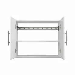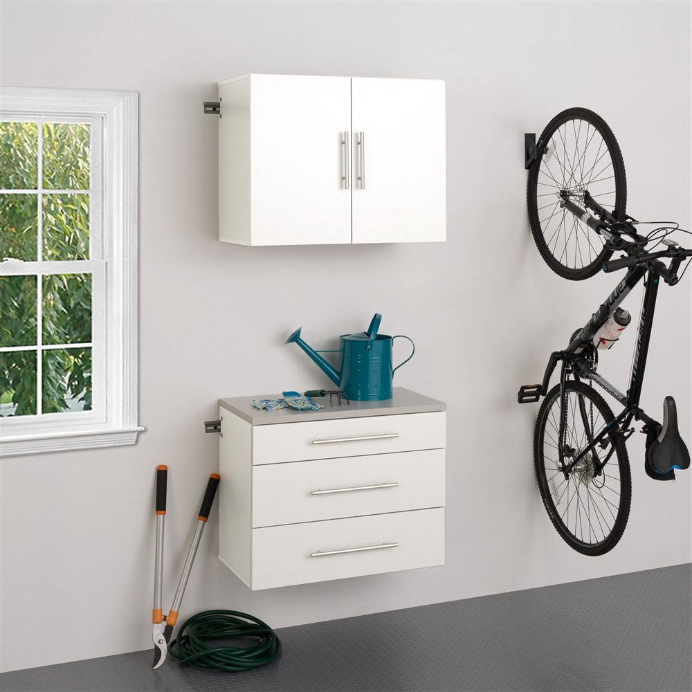 The HangUps 30″” Upper Cabinet offers versatility for your ever changing storage needs in the garage, laundry room, office or workshop. The Upper Cabinet mounts securely to the wall with a heavy duty metal rail and hook system. The wall mounted feature ensures easy cleaning beneath the cabinets and protects your stored items from water & dirt. The HangUps Collection by Prepac(R) is constructed using laminated composite wood and features metal handles and adjustable hinges. This product ships ready-to-assemble and includes all hanging rails and fastening bolts. Add other cabinets from our HangUps Collection by Prepac(R) to create a storage system to convert any cluttered room into an organized space.