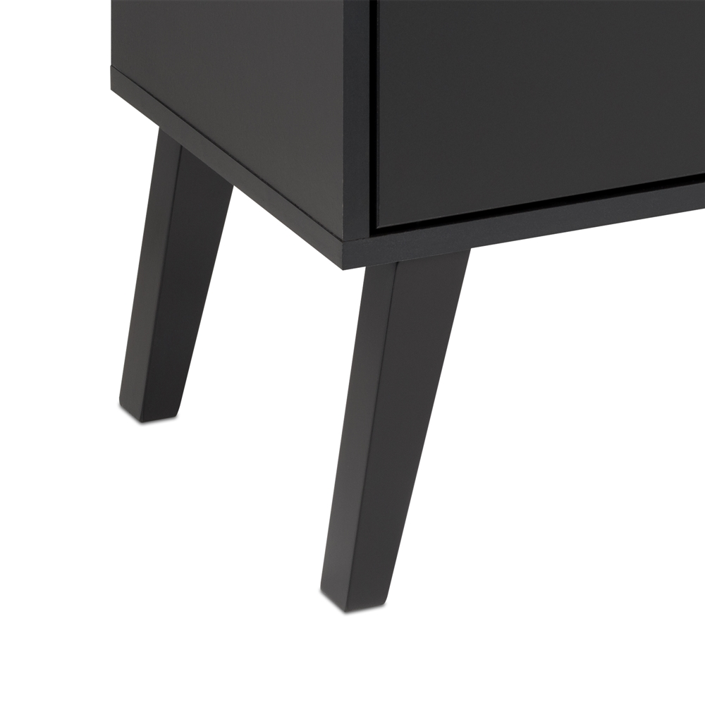 - Tapered 8-in high solid wood legs