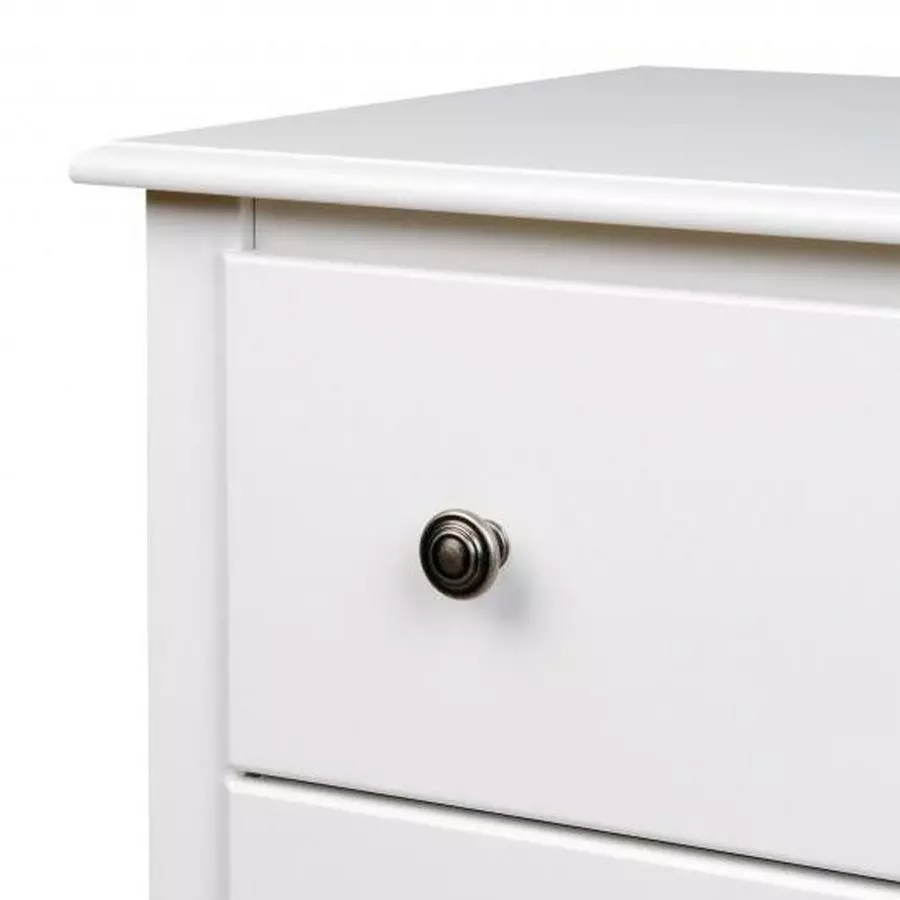 - Drawers feature real wood sides and run smoothly on metal glides with built-in safety stops