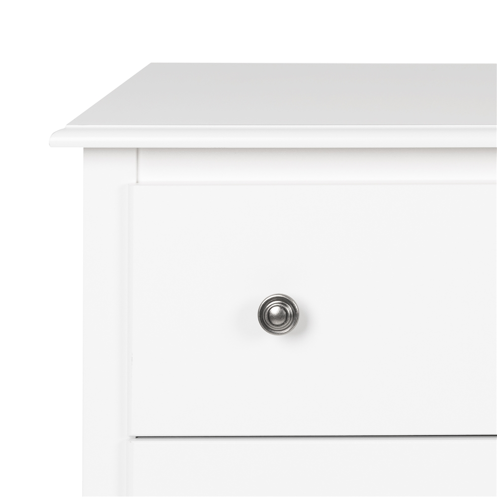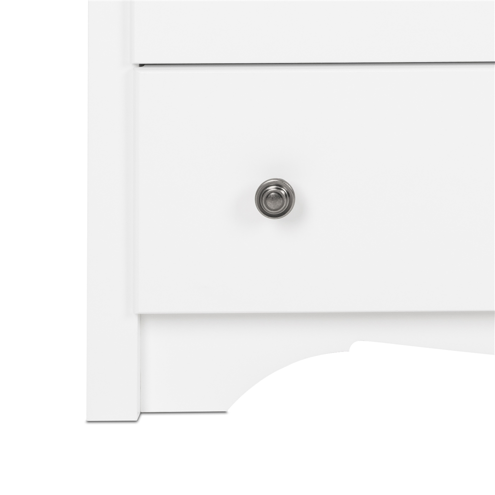 - Solid brushed nickel knobs; solid pine drawer sides and sturdy MDF drawer fronts provide lasting durability