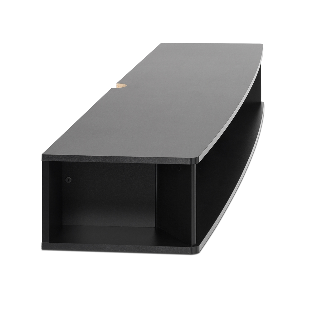 - TV stand mounts easily to wall with the Prepac innovative hanging rail system.